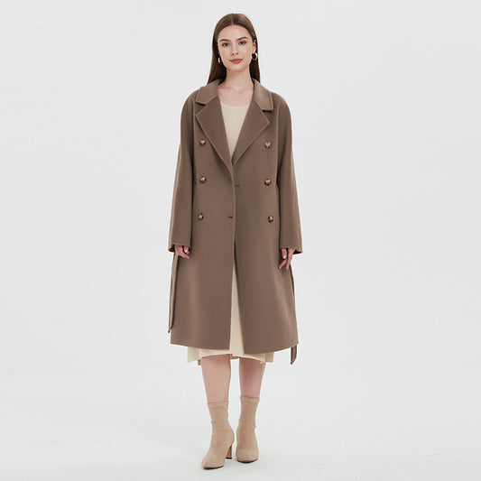Lapel Coat Same Style Minimalist Double-sided Wool Cashmere Side Split Long Coat For Women
