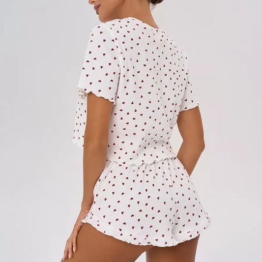 Thin Cotton Printed Comfortable Loose Breathable Short-sleeved Shorts Summer Pajamas Home Wear For Women